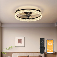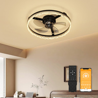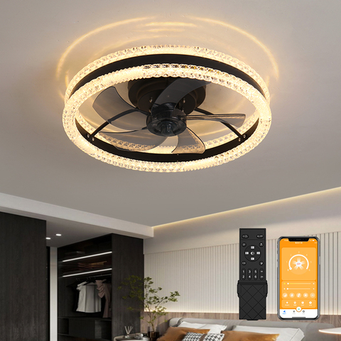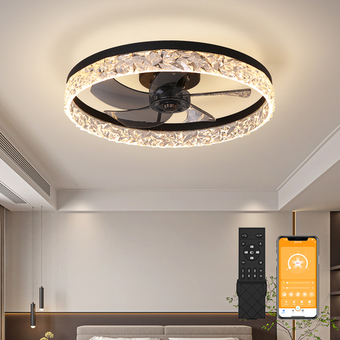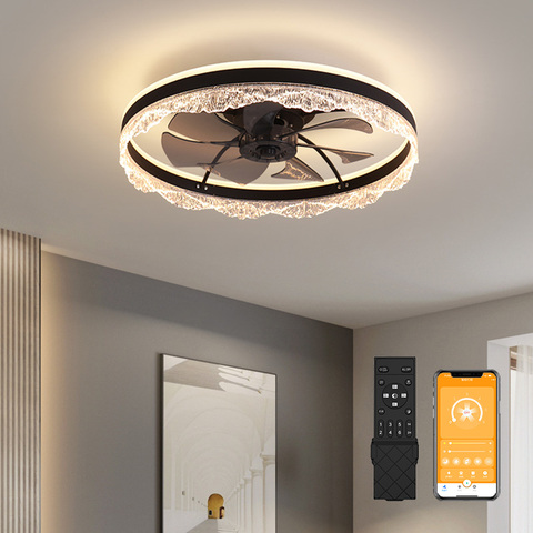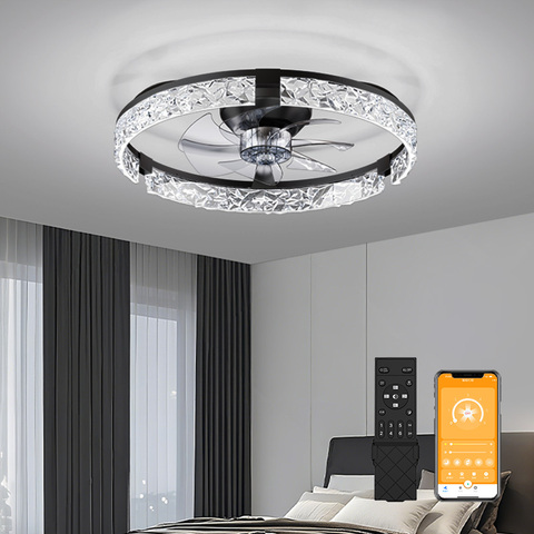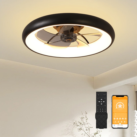 Ventilador de techo integrado silencioso fino negro con luz y control remoto APP Control DC Motor cuerpo de lámpara de plástico para dormitorio